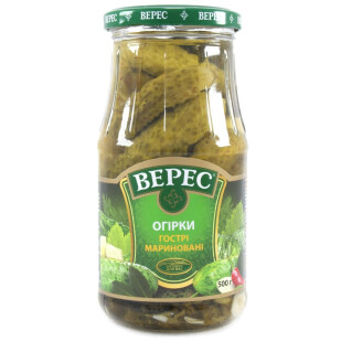 Огурцы Верес маринованные острые, 500г (4820076280511)Огурцы Верес маринованные острые, 500г (4820076280511)