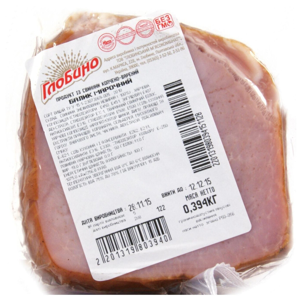 Балык Марочный в/с Глобино МК, кгСостав: свинина жилованная нежирная, пищевая композиция, соль кухонная, стабилизатор цвета.Питательная (пищевая) ценность 100 г продукта: белок: не менее чем 11,0 г, жир: не более чем 19,0 г, углеводы: не более чем 0,0 г.Энергетическая ценность (калорийность) 100 г продукта: 1075,0 кДж (256,8 ккал).