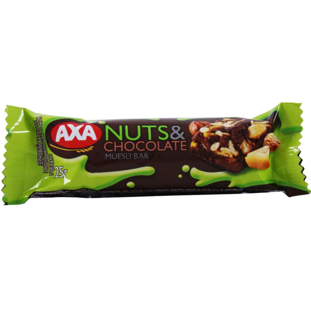 Батончик АХА зерновий з шоколадом та горіхами, 25г (4820008125675)
