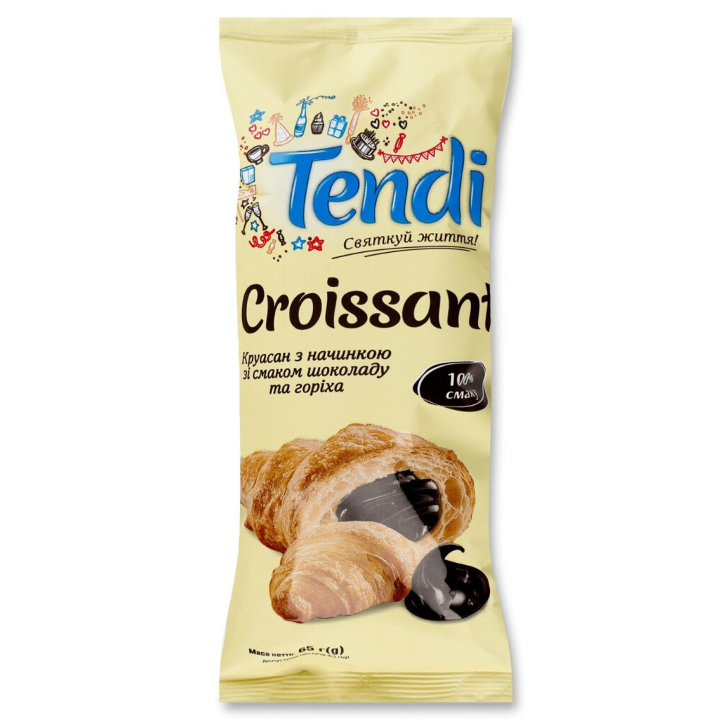 Круассан Tendi с начинкой вкус шоколада и ореха, 65г (4823117502030)