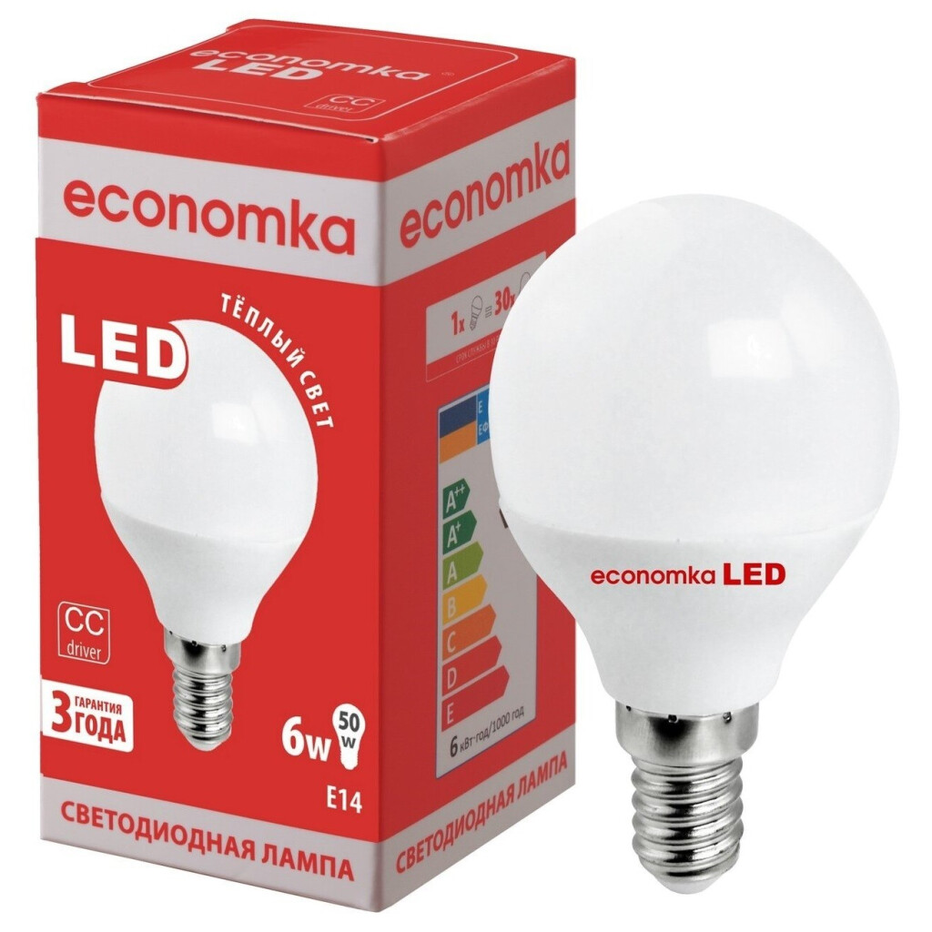 Лампа Экономка LED G45 6W 2800K E14, шт (4820172680567)