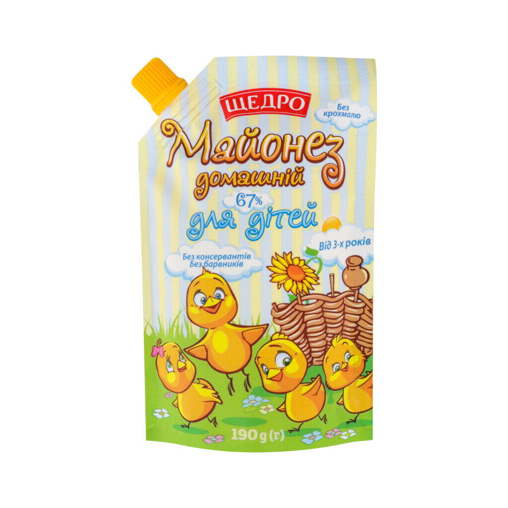 Майонез Щедро Домашний для детей 67%, 190г (4823097402375)