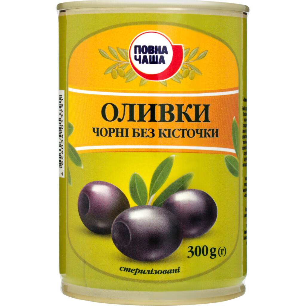 Оливки Повна Чаша черные без косточки, 300г (4824034013791)
