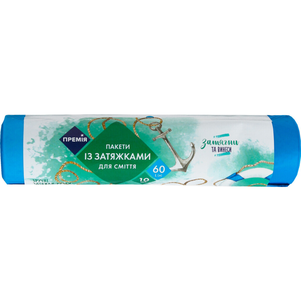 Пакеты для мусора Премія с затяжками 60л, 10шт/уп (4823096406824)