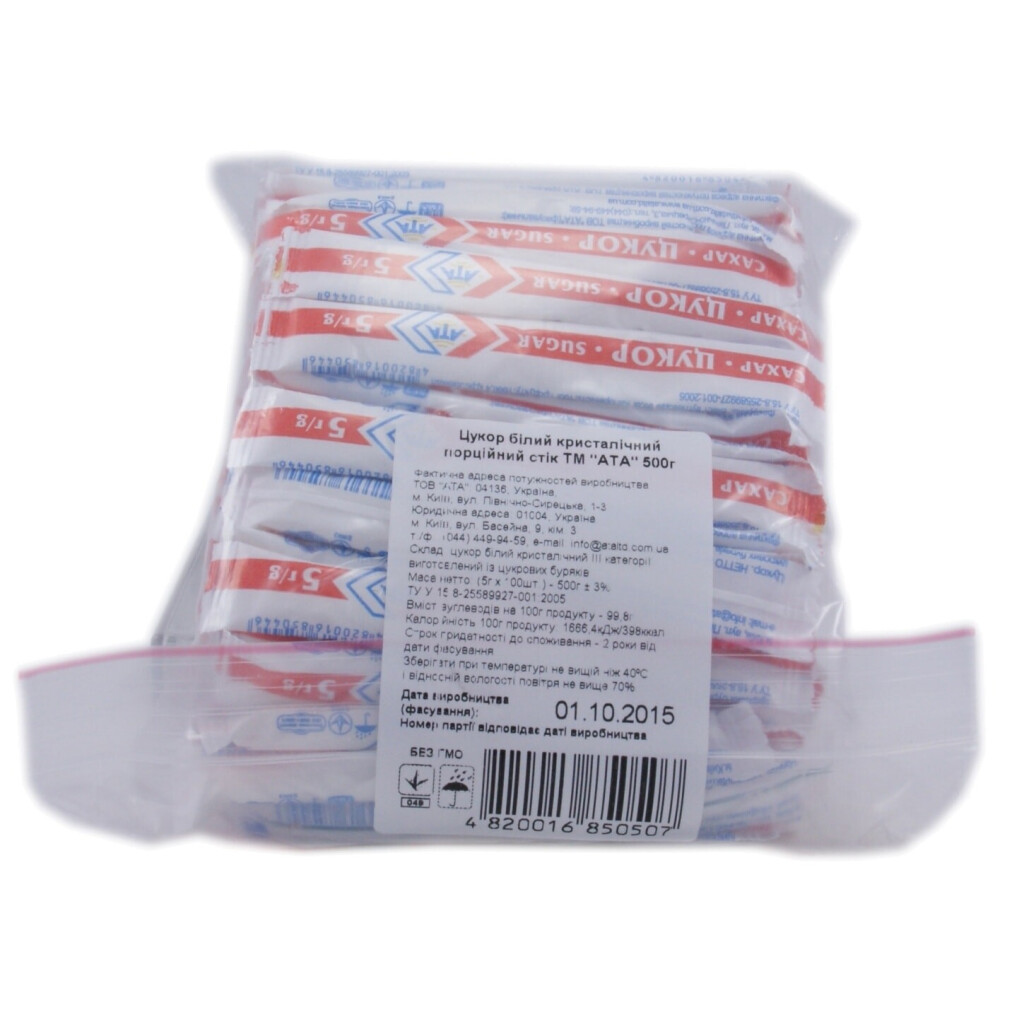 Сахар АТА белый порционный в стиках, 100*5г (4820016850507)