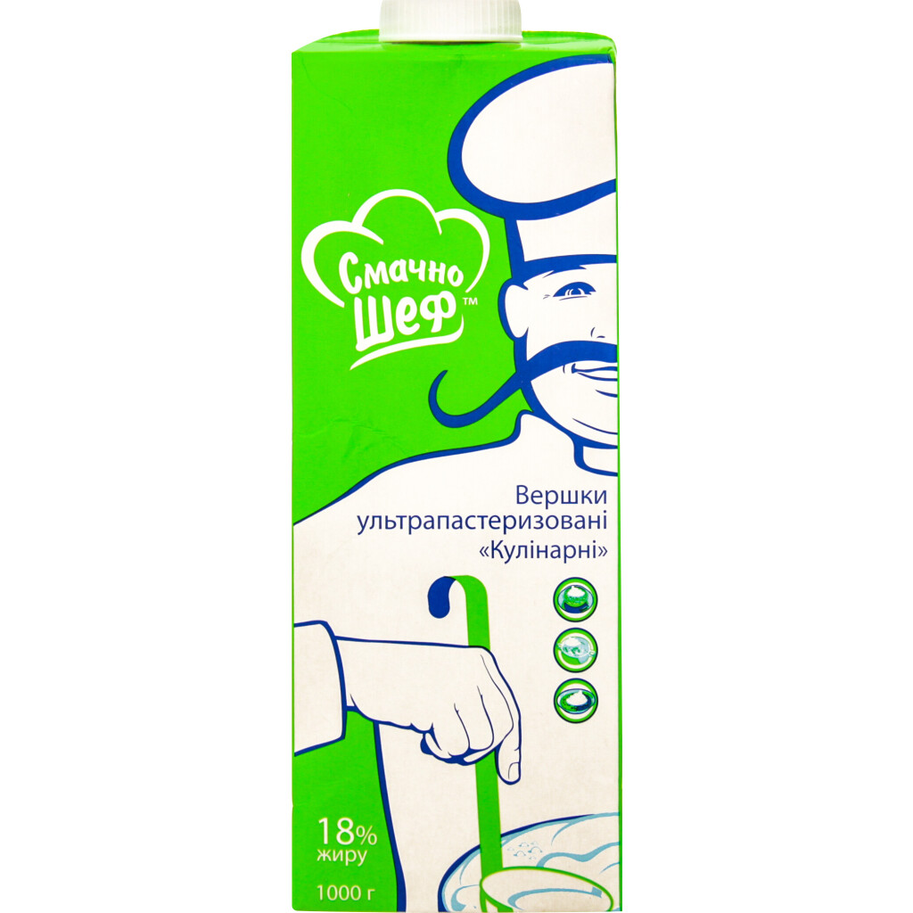Сливки кулинарные ультрапастеризованные Смачно Шеф 18%, 1000мл (4820003481202)