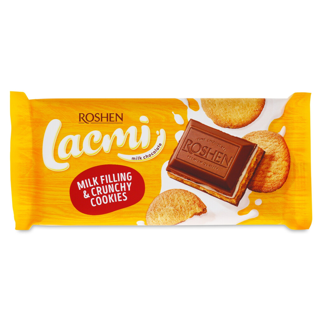 Шоколад молочний Roshen Lacmi з молочною начинкою та печивом, 100г (4823077633171)