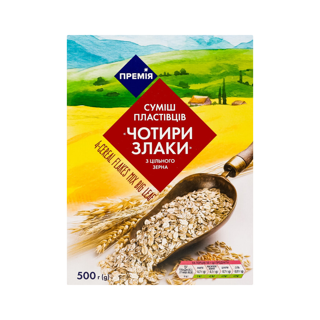 Суміш пластівців Премія 4 злаки з цільного зерна, 500г (4823096420905)