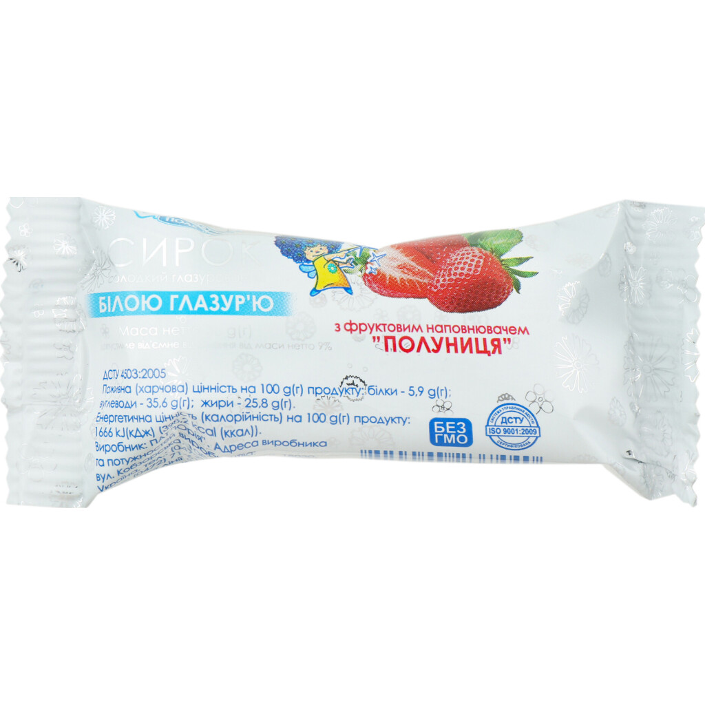 Сырок Волошкове Поле в белой глазури клубника 26%, 36г (4820004237440)