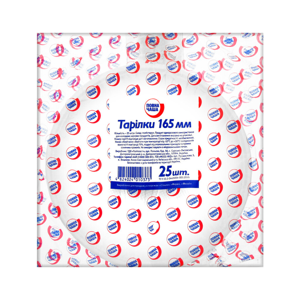 Тарілки десертні Повна Чаша пластикові 165мм, 25шт/уп (4824024010373)