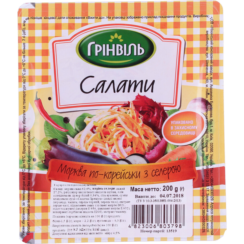 Морковь Грінвіль с сельдереем, 200г (4823006803798)