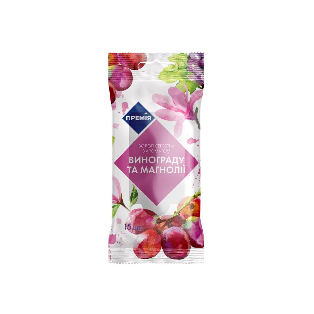 Салфетки влажные Премія Виноград/магнолия, 15шт/уп (4823096403250)