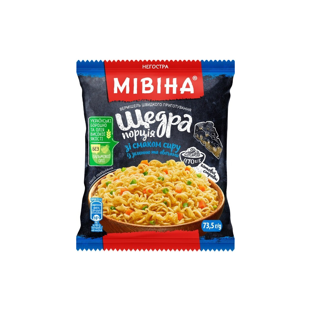 Вермишель Мівіна Щедрая порция со вкусом сыра и зелени, 80г (7613287747518)